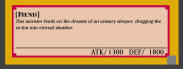 The Gross Ghost of Fled Dreams DARK / Fiend / Level 4 / ATK 1300 / DEF 1800 This monster feeds on the dreams of an unwary sleeper, dragging the victim into eternal slumber. COMMON |