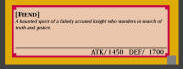 Headless Knight EARTH / Fiend / Level 4 / ATK 1450 / DEF 1700 A haunted spirit of a falsely accused knight who wanders in search of truth and justice. COMMON |