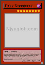 Dark Necrofear DARK / Fiend / Level 8 / ATK 2200 / DEF 2800 This card cannot be Normal Summoned or Set. This card can only be Special Summoned by removing from play 3 Fiend-Type monsters in your Graveyard. If this card is destroyed as a result of battle or by your opponent's card effect while it is a Monster Card, it is treated as an Equip Card during the End Phase of this turn, and equip 1 of your opponent's monsters with this card. As long as it is equipped with this card, you control the equipped monster. SUPER RARE |