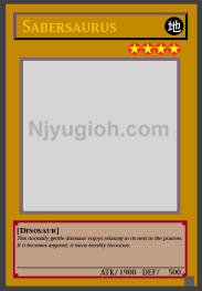 Sabersaurus EARTH / Dinosaur / Level 4 / ATK 1900 / DEF 500 This normally gentle dinosaur enjoys relaxing in its nest in the prairies. If it becomes angered, it turns terribly ferocious. ULTRA RARE |