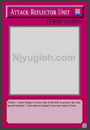Attack Reflector Unit Normal Trap Tribute 1 "Cyber Dragon" on your side of the field to activate this card. Special Summon 1 "Cyber Barrier Dragon" from your hand or Deck. SUPER RARE |