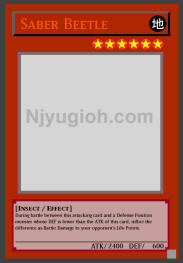 Saber Beetle EARTH / Insect / Level 6 / ATK 2400 / DEF 600 During battle between this attacking card and a Defense Position monster whose DEF is lower than the ATK of this card, inflict the difference as Battle Damage to your opponent's Life Points. ULTRA RARE |