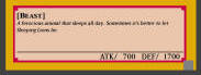 Sleeping Lion EARTH / Beast / Level 4 / ATK 700 / DEF 1700 A ferocious animal that sleeps all day. Sometimes it's better to let Sleeping Lions lie. COMMON |