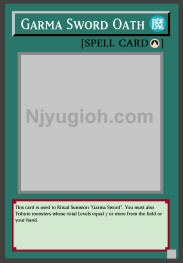 Garma Sword Oath Ritual Spell This card is used to Ritual Summon "Garma Sword". You must also Tribute monsters whose total Levels equal 7 or more from the field or your hand. COMMON |