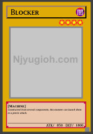 Blocker DARK / Machine / Level 4 / ATK 850 / DEF 1800 Constructed from several components, this monster can launch them in a pincer attack. COMMON |