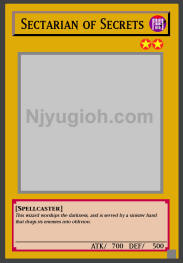 Sectarian of Secrets DARK / Spellcaster / Level 2 / ATK 700 / DEF 500 This wizard worships the darkness, and is served by a sinister hand that drags its enemies into oblivion. COMMON |