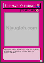 Ultimate Offering Continuous Trap By paying 500 Life Points, Normal Summon or Set 1 extra monster. You can only activate this effect during your Main Phase or your opponent's Battle Phase. COMMON |