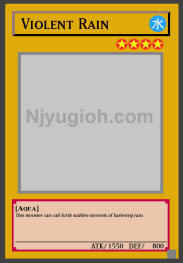 Violent Rain WATER / Aqua / Level 4 / ATK 1550 / DEF 800 This monster can call forth sudden torrents of battering rain. COMMON |