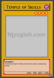 Temple of Skulls DARK / Zombie / Level 4 / ATK 900 / DEF 1300 A mysterious temple of skulls and bones that pulls in unsuspecting enemies. COMMON |