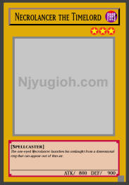 Necrolancer the Timelord DARK / Spellcaster / Level 3 / ATK 800 / DEF 900 The one-eyed Necrolancer launches his onslaught from a dimensional ring that can appear out of thin air. COMMON |