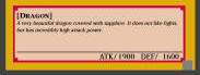 Luster Dragon WIND / Dragon / Level 4 / ATK 1900 / DEF 1600 A very beautiful dragon covered with sapphire. It does not like fights, but has incredibly high attack power. COMMON |