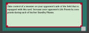| Comments: | While stats of (300/200) may be unimpressive, his effect really makes up for it as he can't be destroyed in battle! The thing is, he's prone to Negate Attack and other targeting cards. |