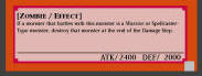 | Comments: | 3000 ATK is decent for a Zombie Monster and simply discard a Monster like VL and bring out Regenerating Mummy! Still, he's not top notch. |