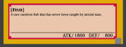 7 Colored Fish WATER / Fish / Level 4 / ATK 1800 / DEF 800 A rare rainbow fish that has never been caught by mortal man. COMMON |