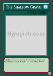 The Shallow Grave Normal Spell Both players select 1 monster from their respective Graveyards and Special Summon them to the field in face-down Defense Position. SUPER RARE |