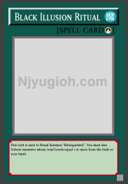 Black Illusion Ritual Ritual Spell This card is used to Ritual Summon "Relinquished". You must also Tribute monsters whose total Levels equal 1 or more from the field or your hand. SUPER RARE |