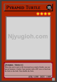 Pyramid Turtle EARTH / Zombie / Level 4 / ATK 1200 / DEF 1400 When this card is sent to the Graveyard as a result of battle, you can Special Summon 1 Zombie-Type monster with a DEF 2000 or less from the Deck to the field. Then shuffle the Deck. SUPER RARE |