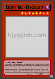 Destiny Hero - Dreadmaster DARK / Warrior / Level 8 / ATK ? / DEF ? If this card is Special Summoned by the effect of "Clock Tower Prison", destroy all monsters on your side of the field except the ones that include "Destiny Hero" in their card names, then you can Special Summon up to 2 monsters from your Graveyard that include "Destiny Hero" in their card names. During the turn this card is Special Summoned, monsters on your side of the field that include "Destiny Hero" in their card names cannot be destroyed, and all Battle Damage inflicted to the controller of this card becomes 0 during battle involving monsters on your side of the field that include "Destiny Hero" in their card names. The ATK and DEF of this card are equal to the combined original ATK of all monsters of your side of the field (except this card) that include "Destiny Hero" in their card name. SUPER RARE |