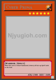 Cyber Prima LIGHT / Warrior / Level 6 / ATK 2300 / DEF 1600 When this card is Tribute Summoned, destroy all face-up Spell Cards on the field. RARE |