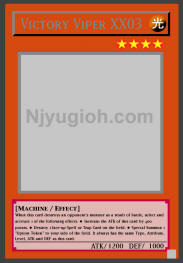 Victory Viper XX03 LIGHT / Machine / Level 4 / ATK 1200 / DEF 1000 When this card destroys an opponent's monster as a result of battle, select and activate 1 of the following effects: ● Increase the ATK of this card by 400 points. ● Destroy 1 face-up Spell or Trap Card on the field. ● Special Summon 1 "Option Token" to your side of the field. It always has the same Type, Attribute, Level, ATK and DEF as this card. RARE |