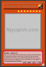 Voltanis the Adjudicator LIGHT / Fairy / Level 8 / ATK 2800 / DEF 1400 After 1 of your Counter Trap Cards has been activated and has resolved, by Tributing all monsters on your side of the field, you can Special Summon this card. If this card is Special Summoned this way, you can destroy cards on your opponent's side of the field up to the number of Fairy-Type monsters you Tributed. RARE |