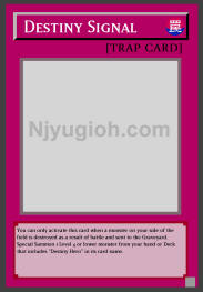 Destiny Signal Normal Trap You can only activate this card when a monster on your side of the field is destroyed as a result of battle and sent to the Graveyard. Special Summon 1 Level 4 or lower monster from your hand or Deck that includes "Destiny Hero" in its card name. SUPER RARE |